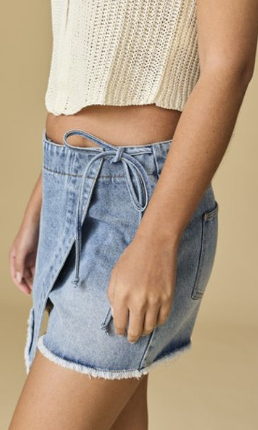 This light denim skort is so cute! It's got a raw hem that adds the perfect touch.