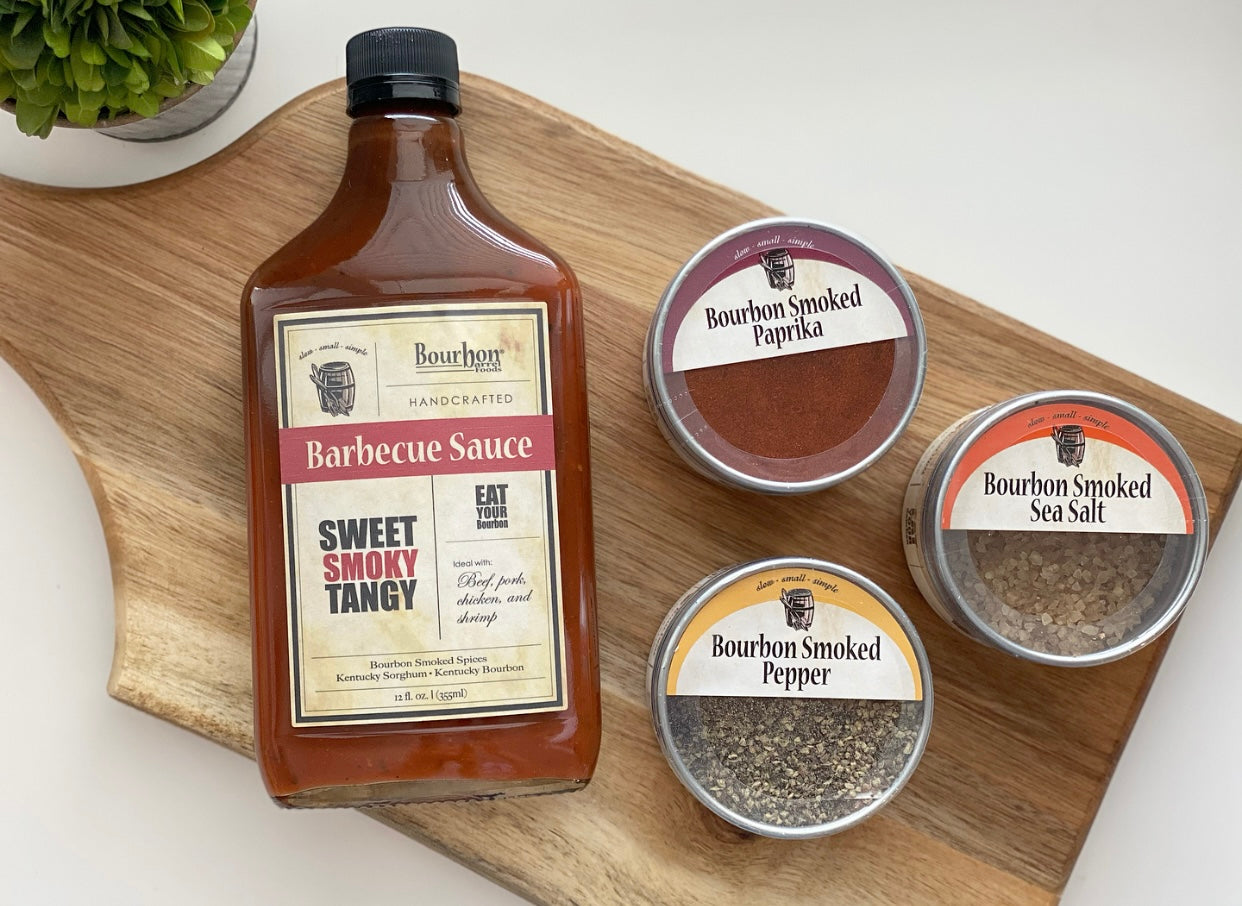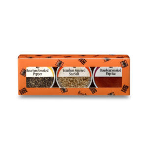 Bourbon smoked favorites – gift packed! Bourbon Barrel Foods' spices are smoked low-and-slow with bourbon barrel staves. This set of Bourbon Smoked Sea Salt, Bourbon Smoked Pepper and Bourbon Smoked Paprika make it easy for kitchen champions to go big on flavor.