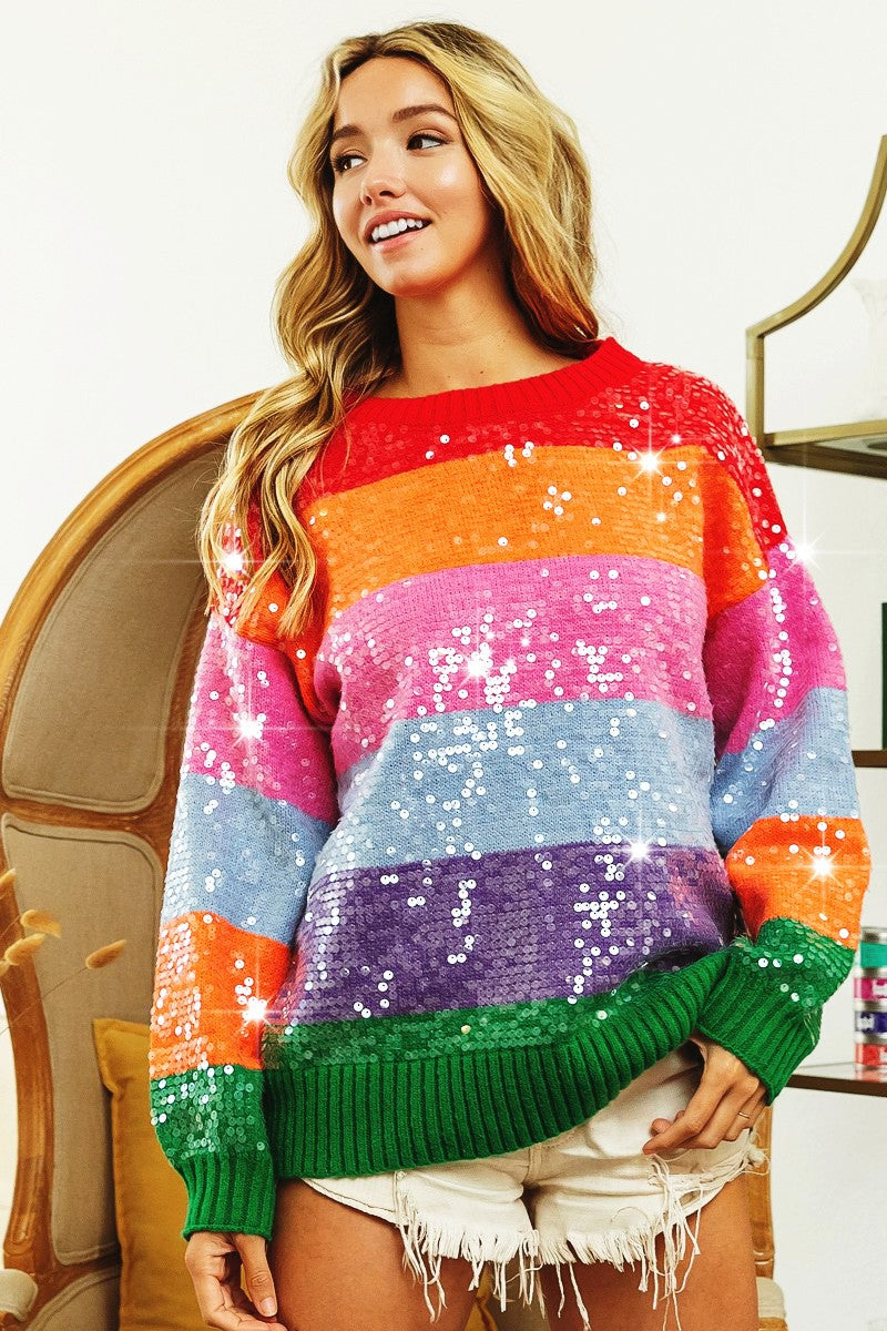 CLEAR SEQUIN ALLOVER MULTI COLORS SWEATER