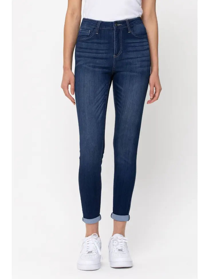 Dark Denim High Rise Skinny with Rolled Cuff