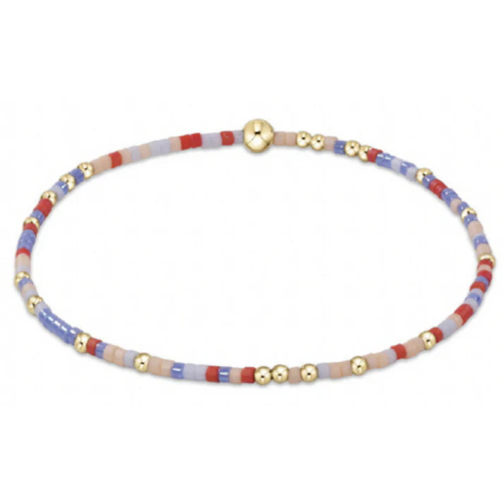 - Hand beaded on high performance elastic for a slight stretch to easily roll on and off your wrist