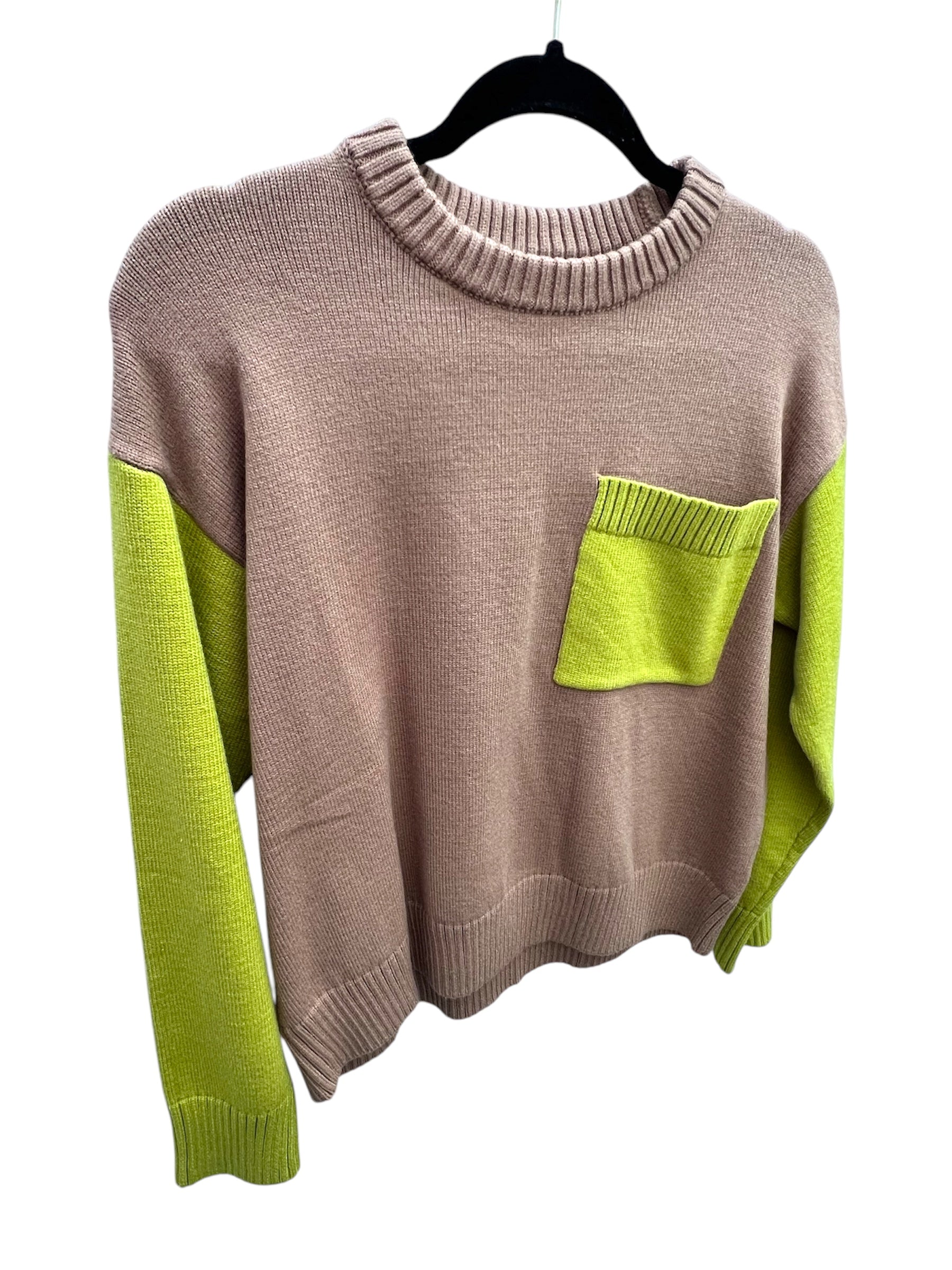 Stylish green and brown color block sweater. Perfect pop of color for these chilly days.