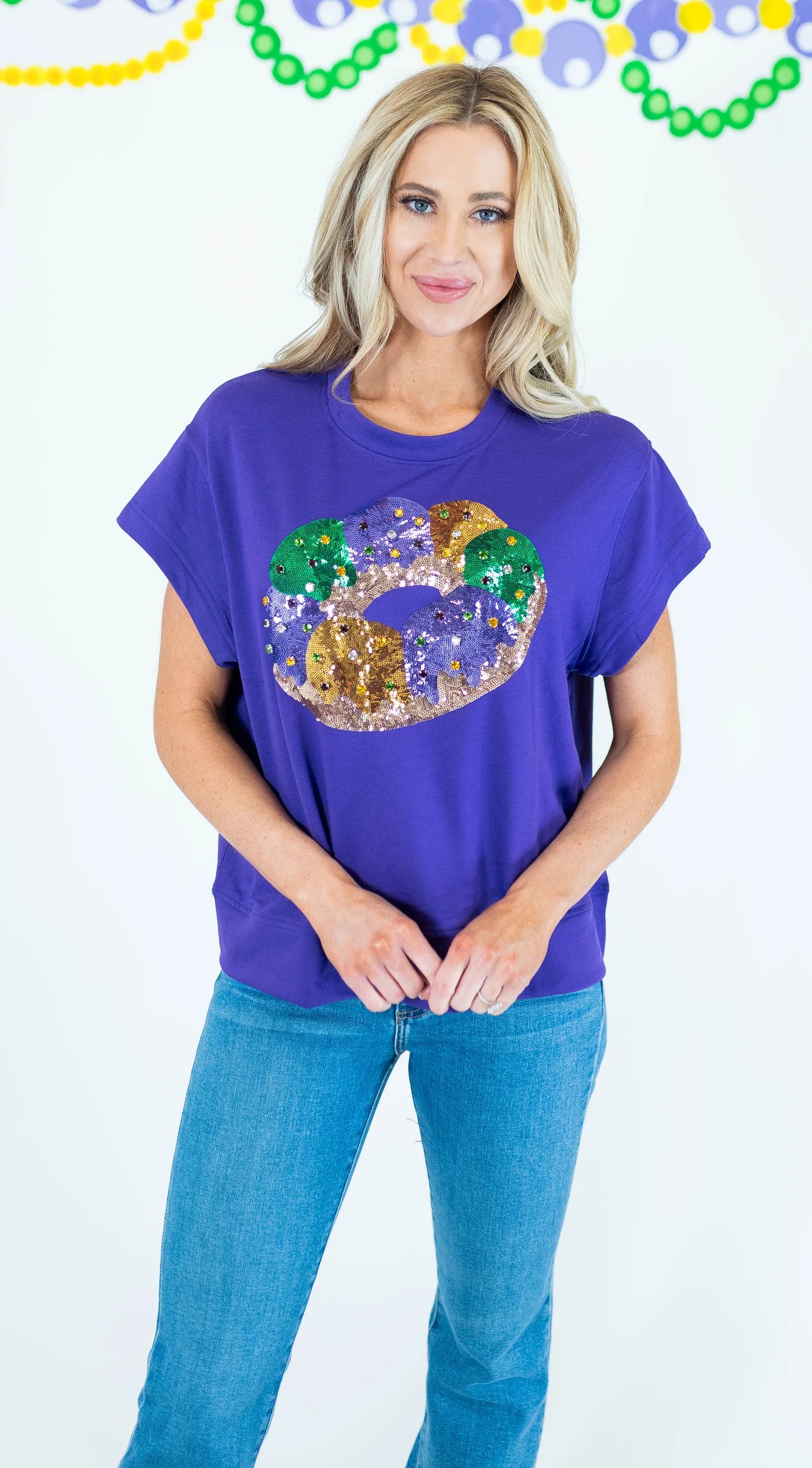 Sequined king cake shirt with jeweled beads