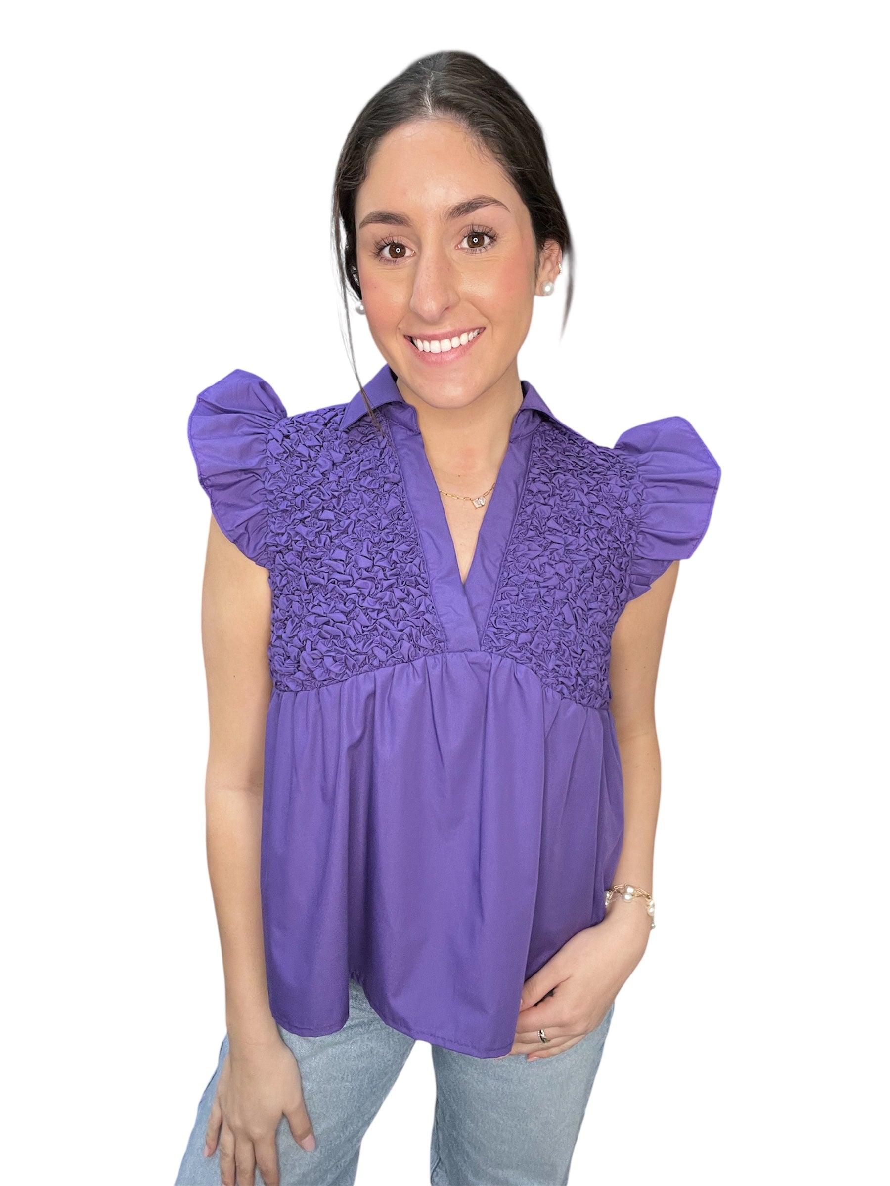 High Tie Neck Bubble Hem Top