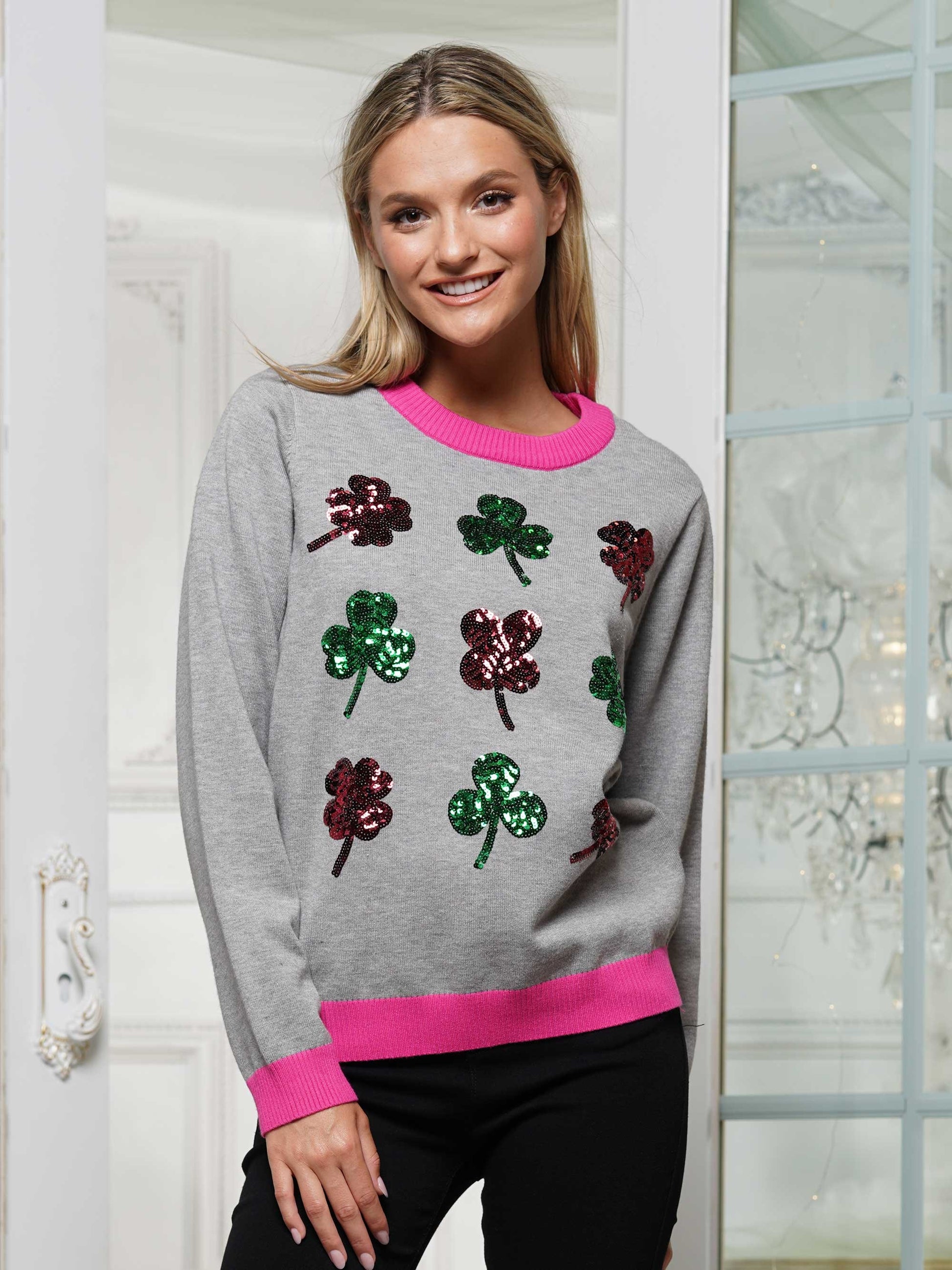 LUCKY! LUCKY! LUCKY! This sequin Shamrock sweater is perfect for St. Patrick's Day.