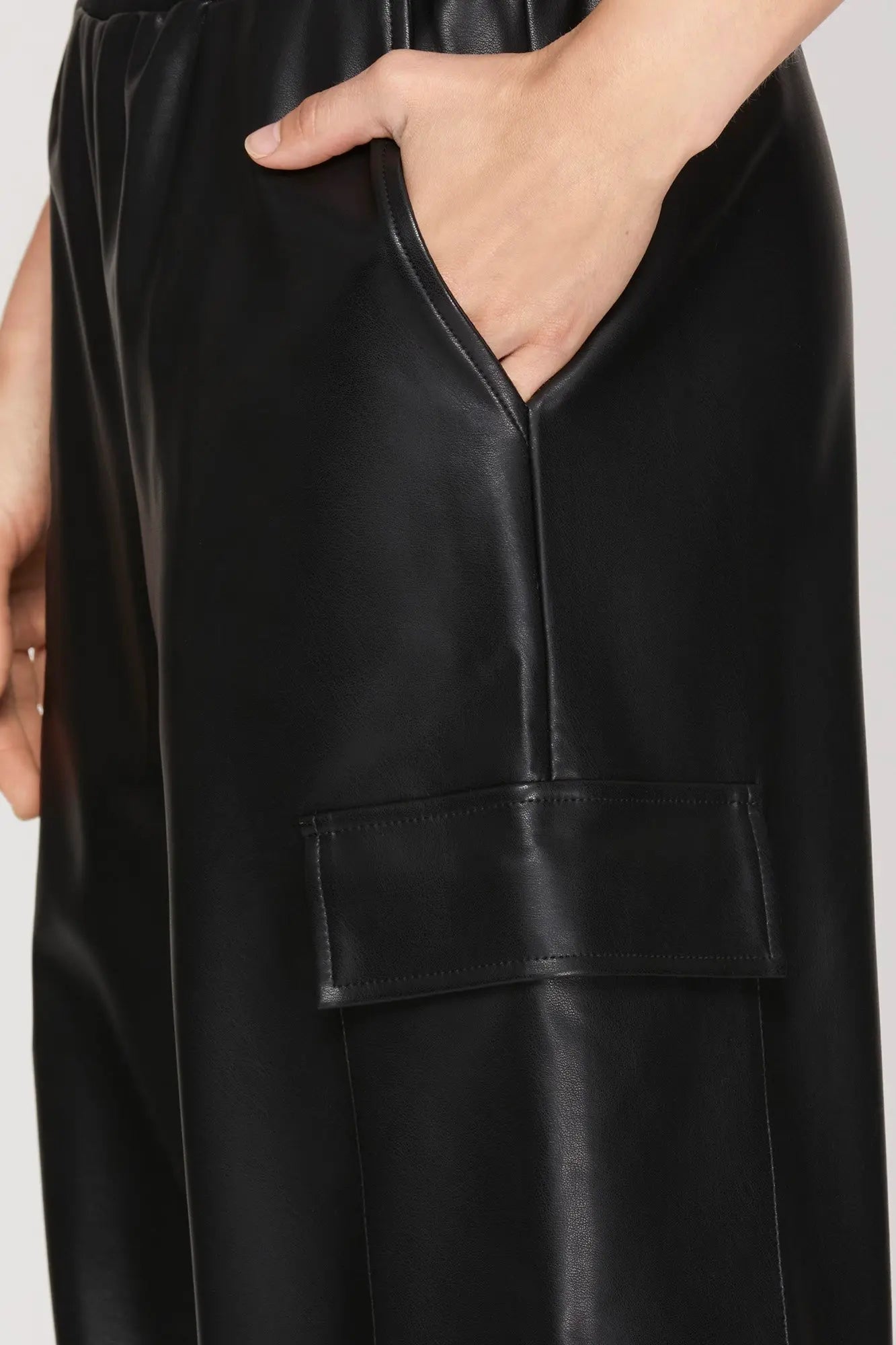 FAUX LEATHER STRAIGHT JOGGER PANTS WITH POCKETS