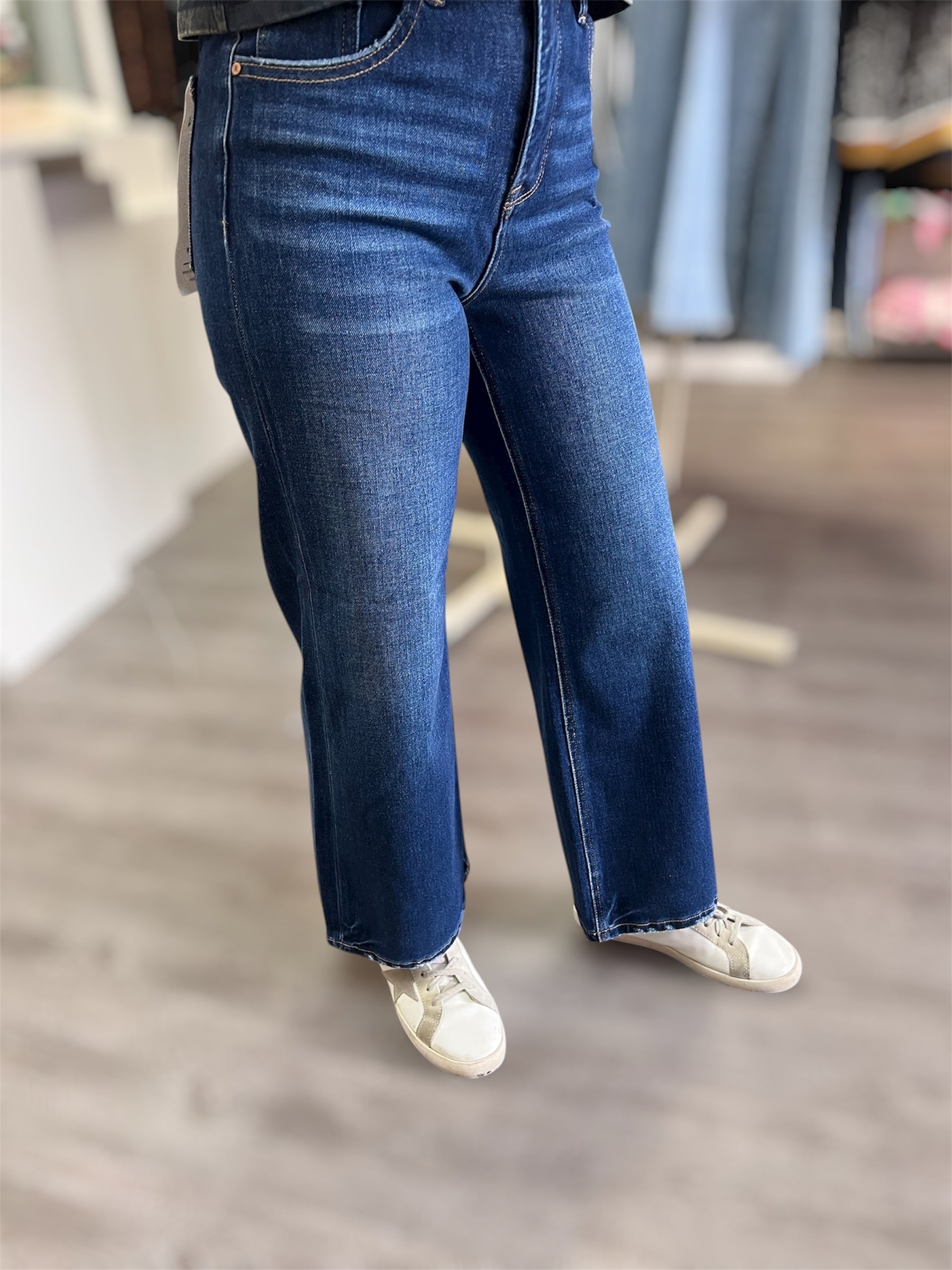 High rise crop. Wide front seam jeans