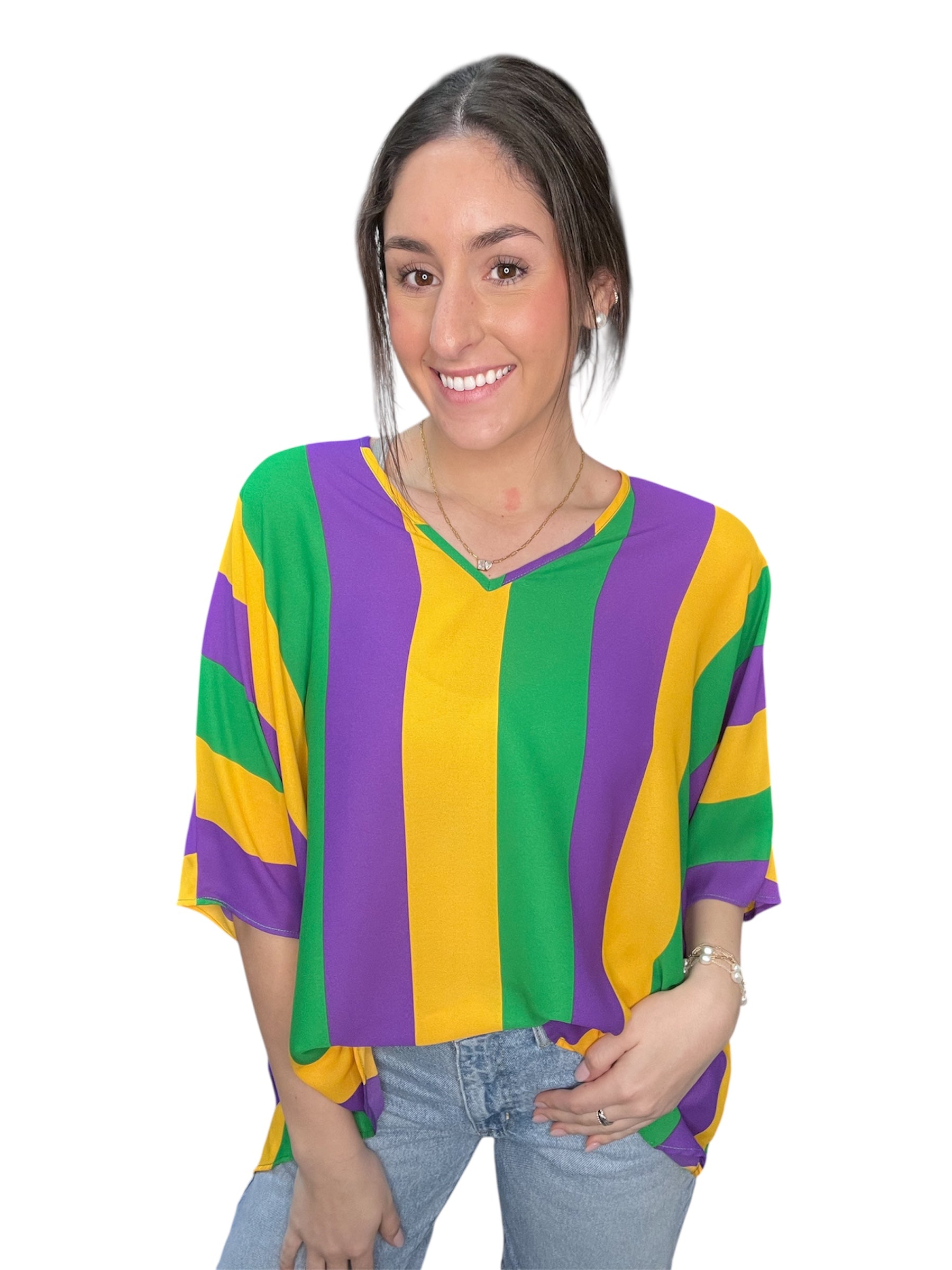 Mardi Stripe V-Neck Oversized Top