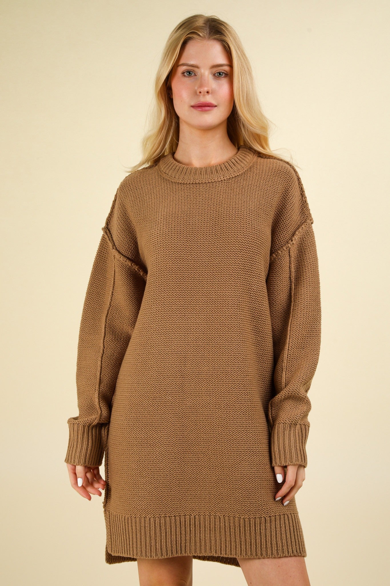 Chunky Round Neck Oversized Sweater Mini Dress