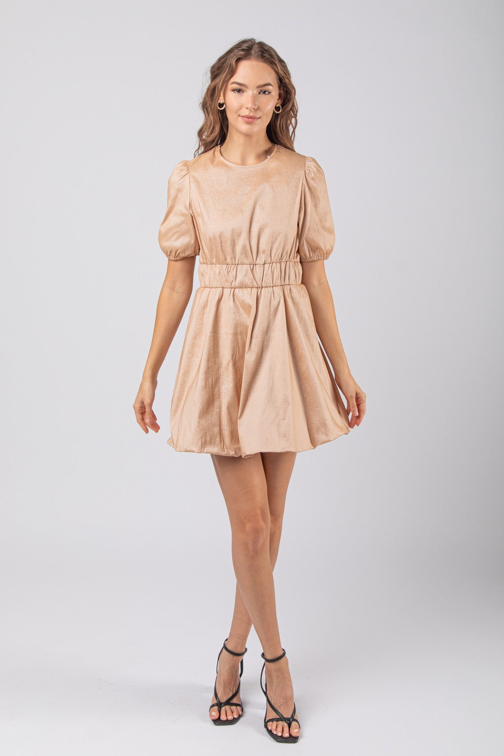 Puff Sleeve Shiny Holiday Party Mini Dress |