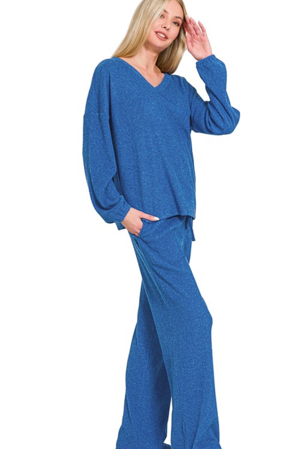 Brushed Hacci long sleeve pant set. Great for lounging or running a quick errand.
