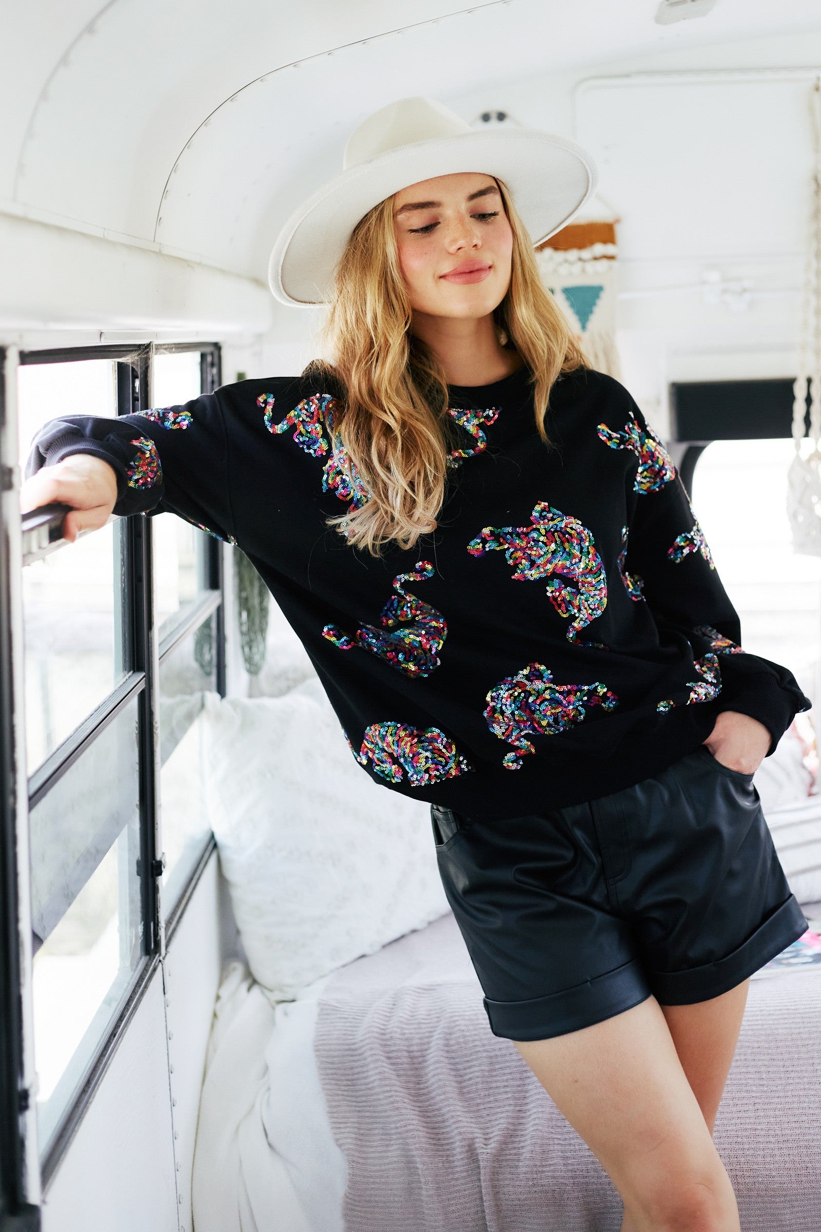 Loose fit pull over - Gold tiger sequin details - French terry - Crew neck