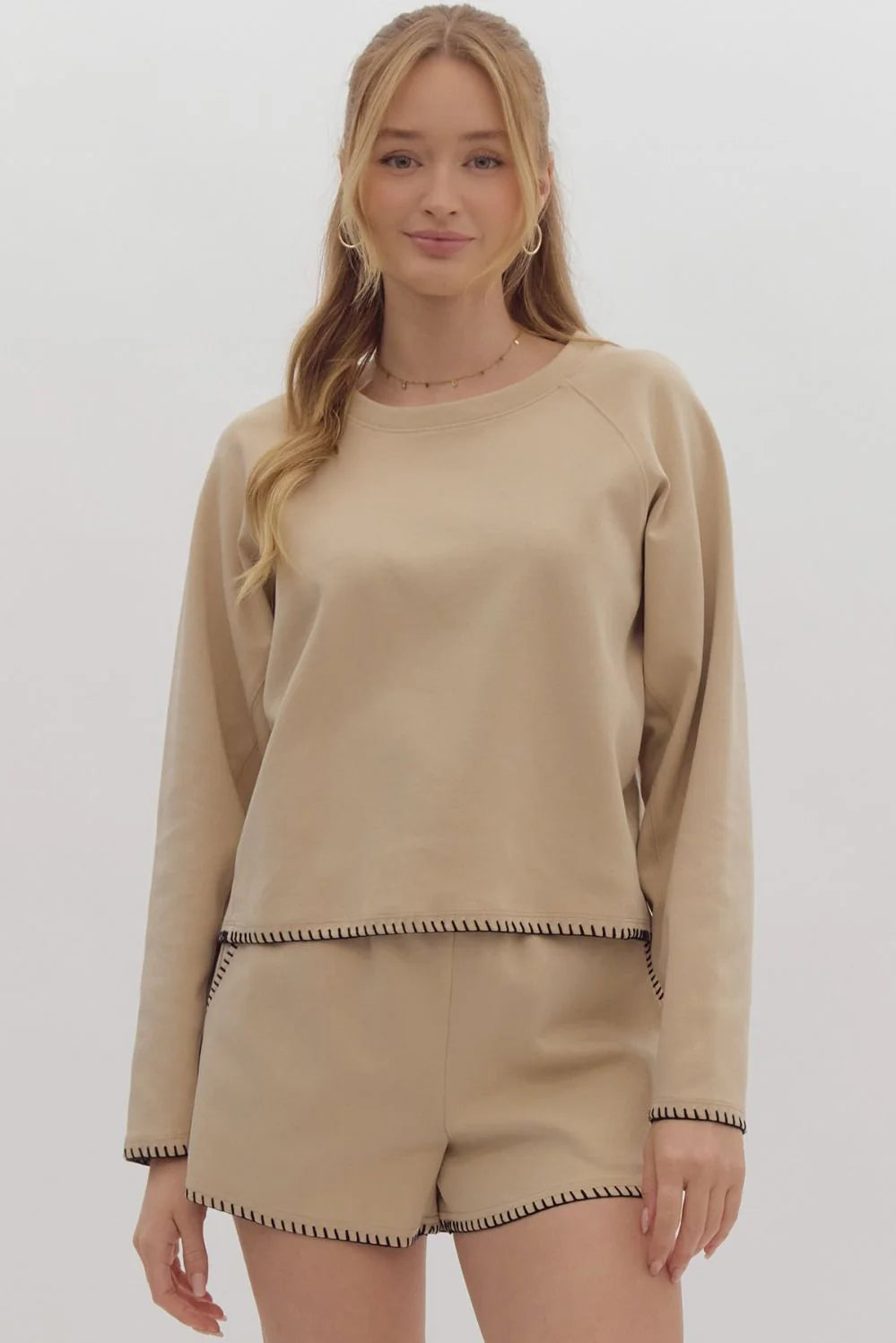 Taupe Set. Long Sleeve and Shorts. Lined in Black.