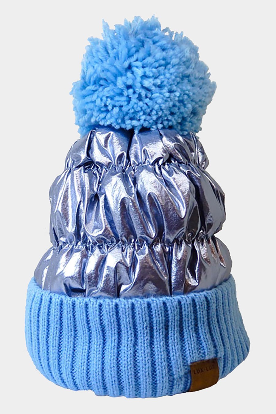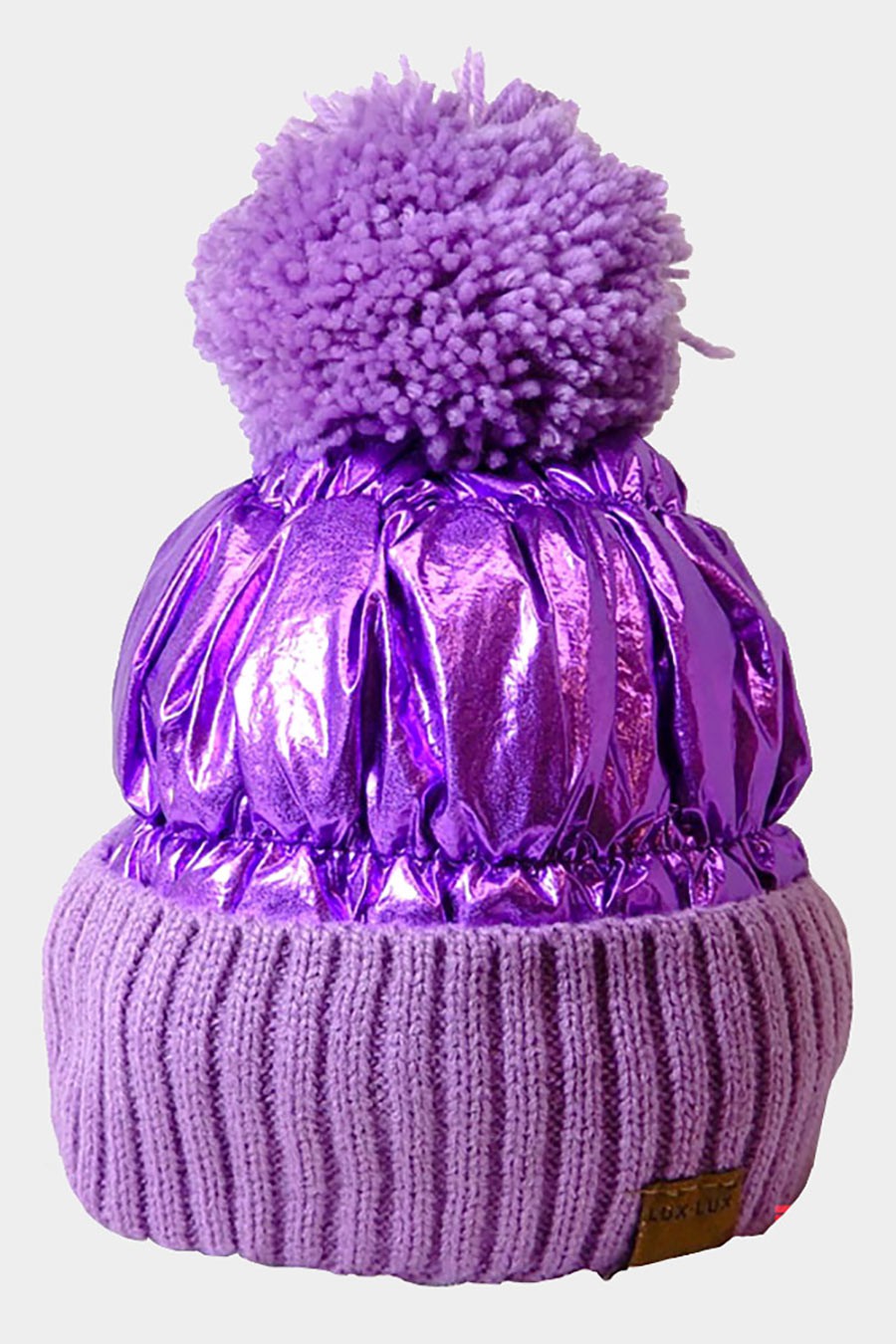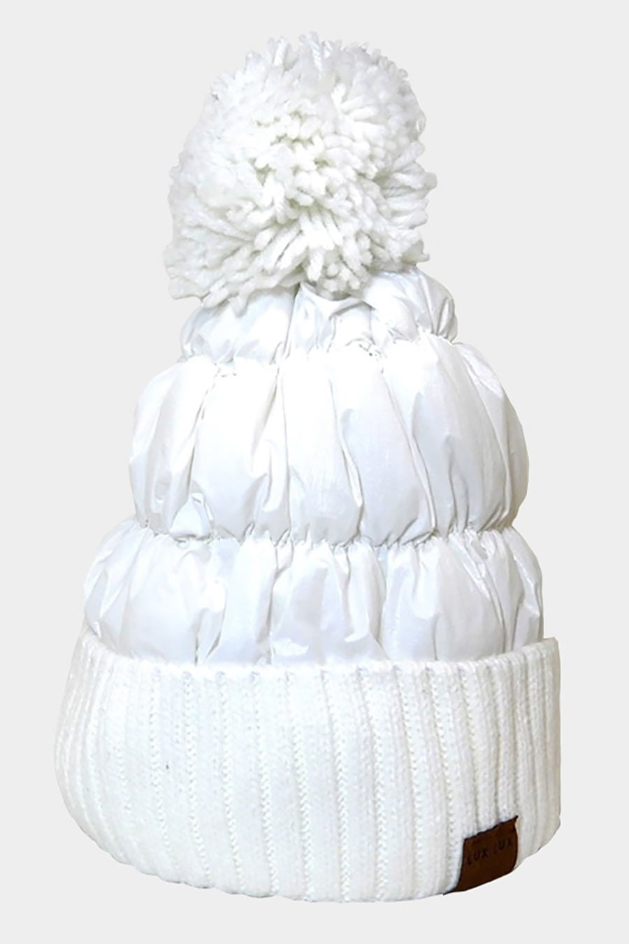 Fleece Lining Puffer Knit Pom Pom Beanie Hat