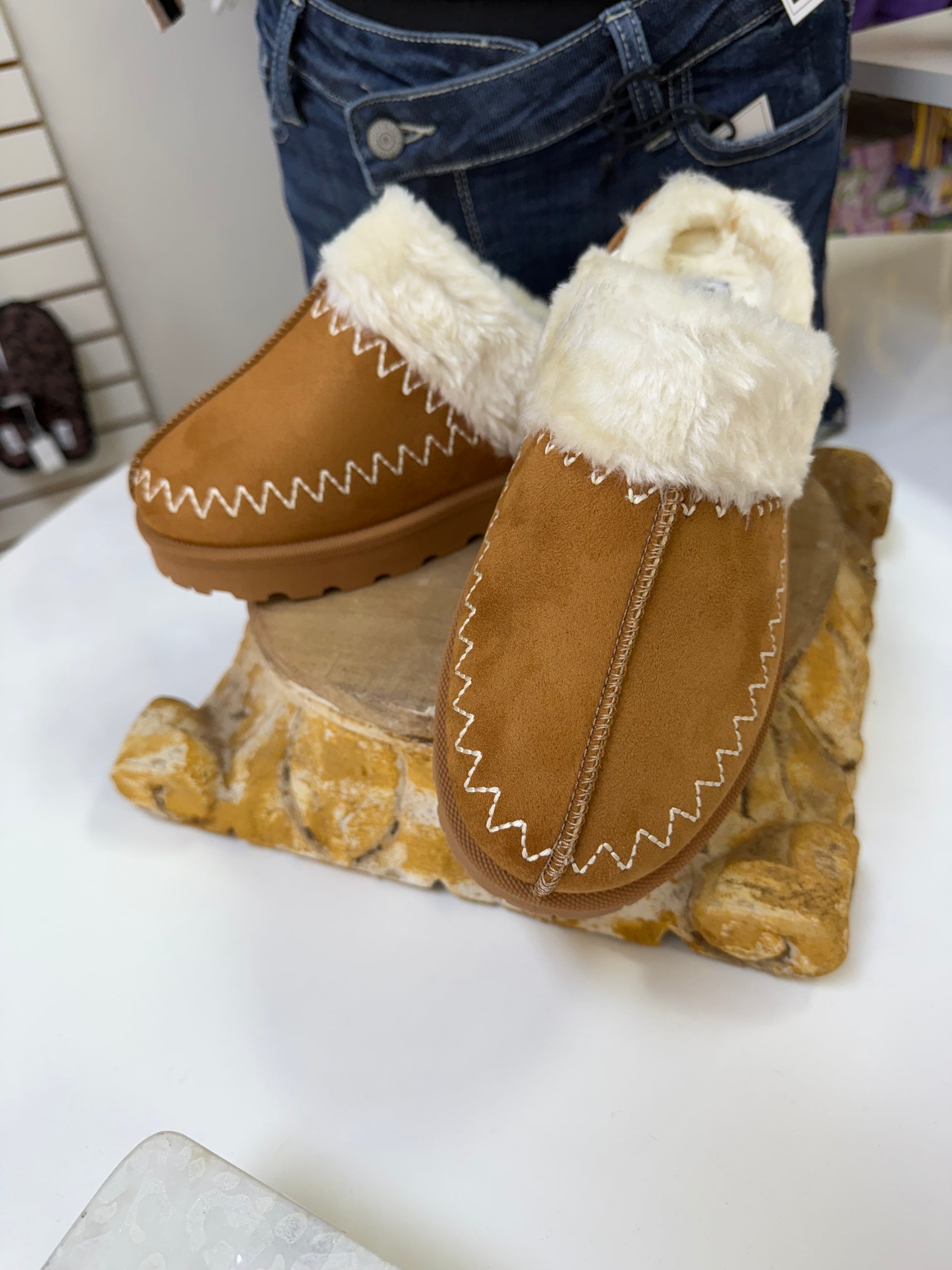 Camel, fur lined clog. Perfect for running errands and keeping your feet warm.